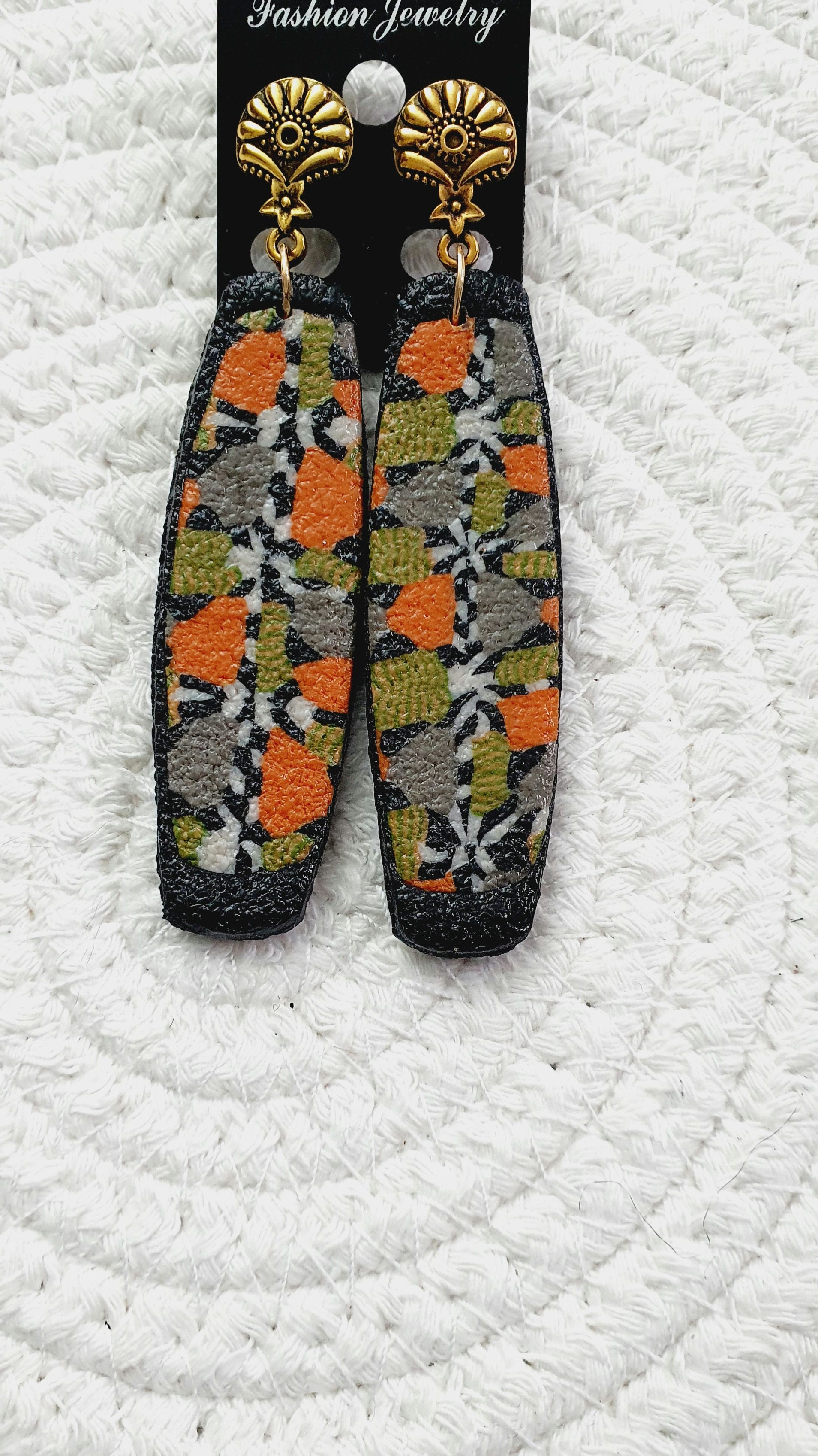 Les boucles d'oreilles assorties présentent un pendentif de 50 mm de hauteur et 17 mm de largeur.