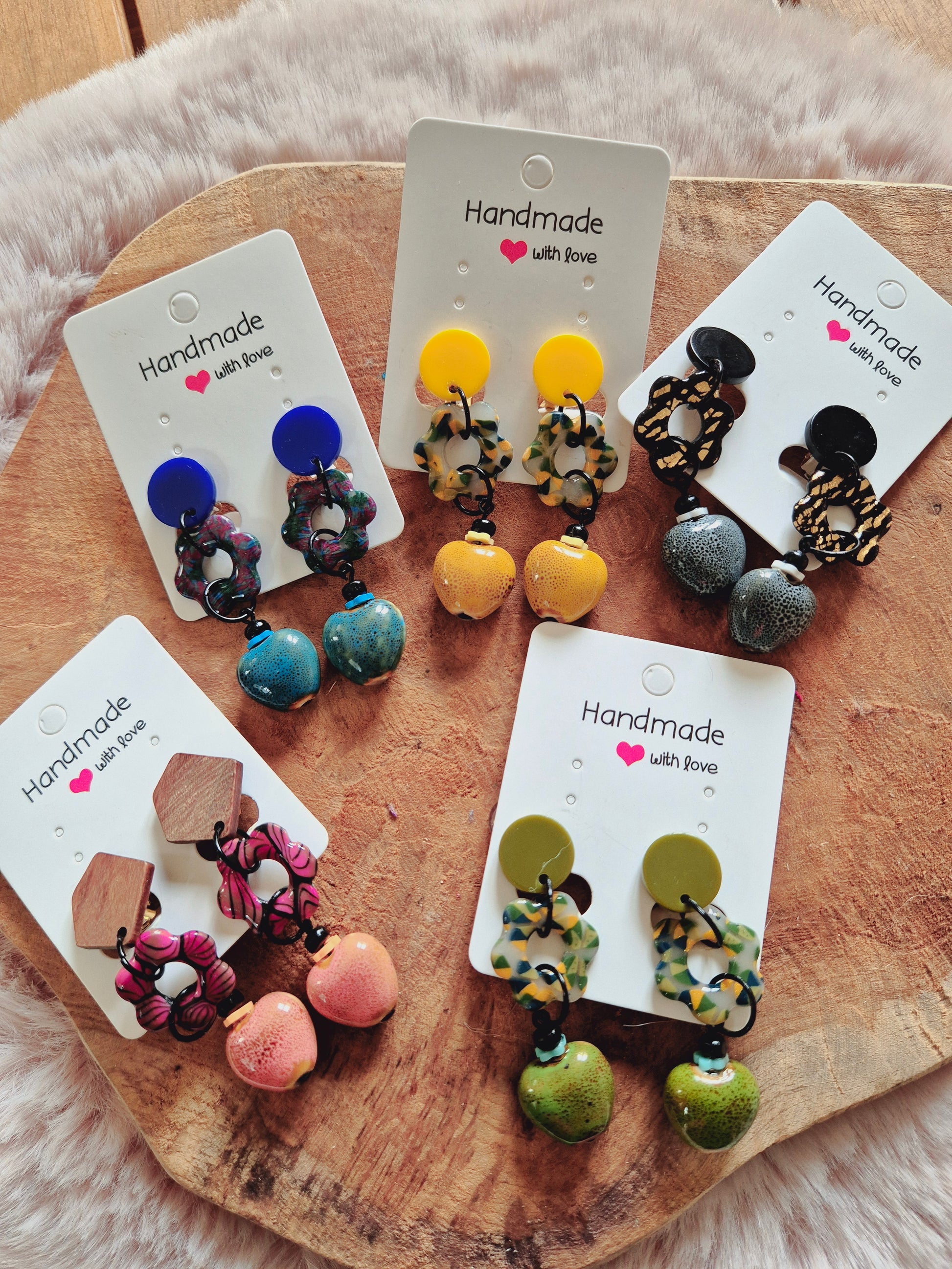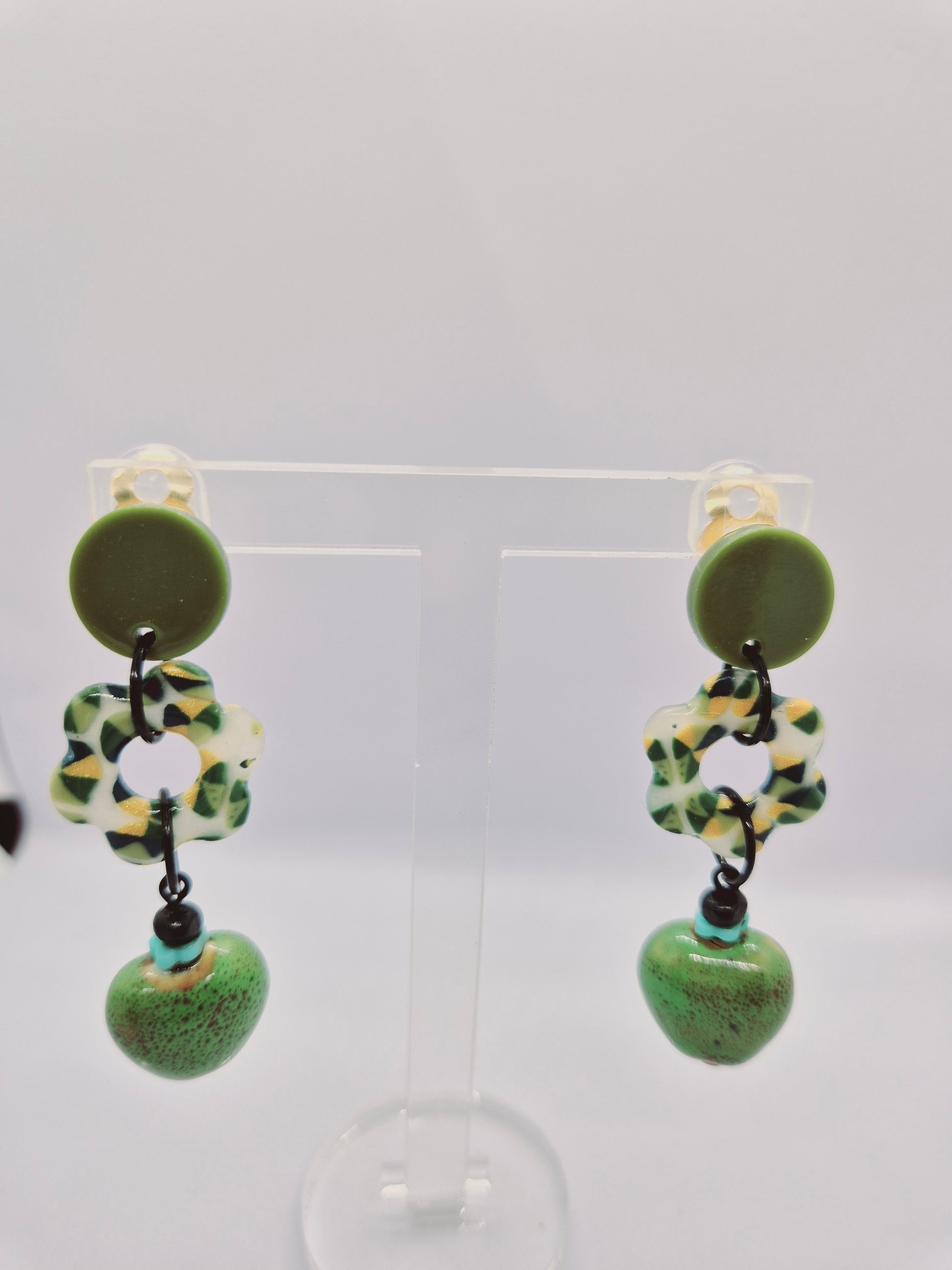 Parfaites pour les oreilles non percées, ces boucles d'oreilles en forme de petits cœurs et de fleurs mesurent 58mm de long.