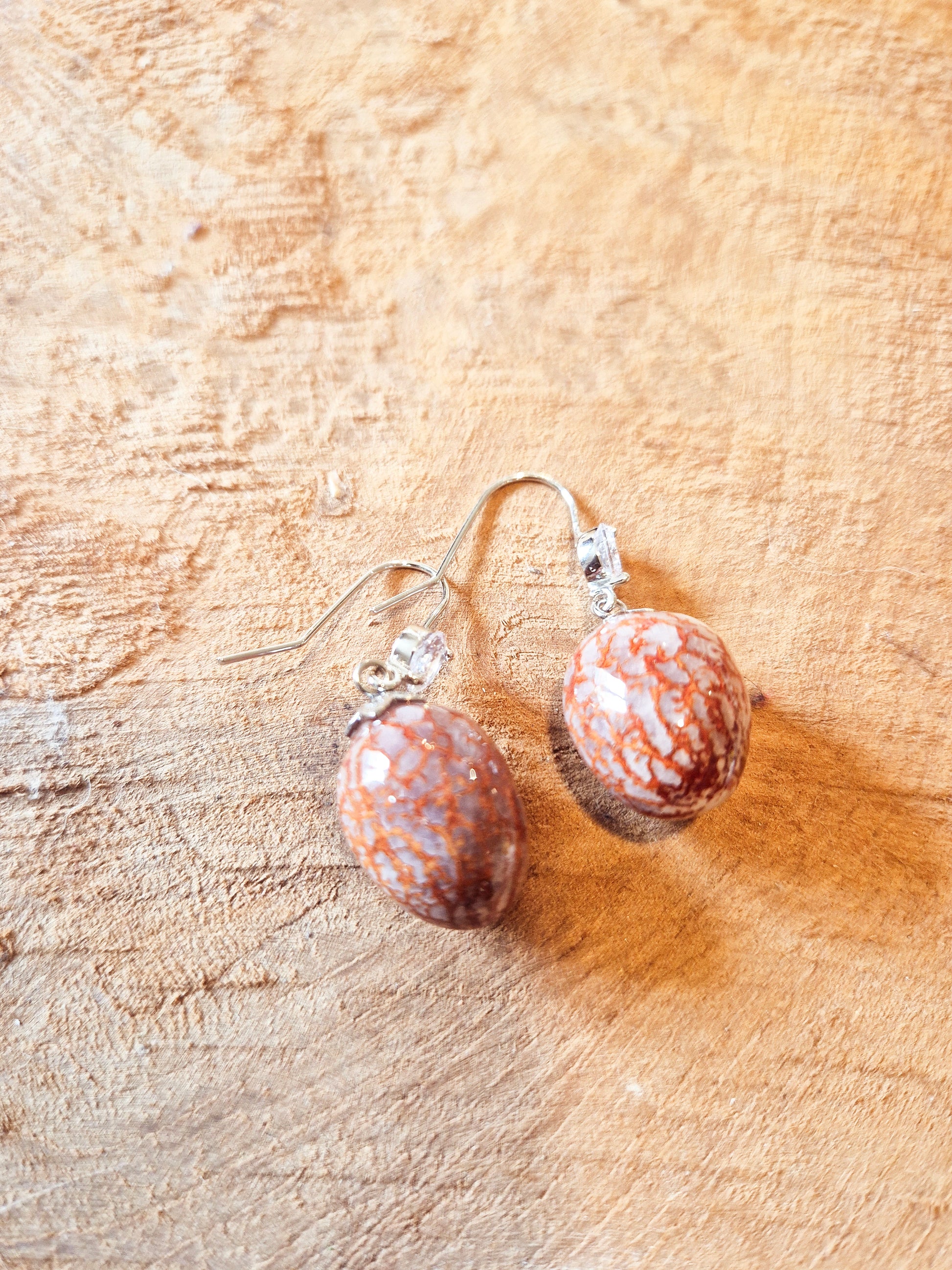 Sublimez votre entourage avec ces magnifiques boucles d'oreilles confectionnées à partir de graines de palmier (ivoire végétal), mesurant 16x20 mm chacune. La hauteur totale du bijou est de 39 mm.