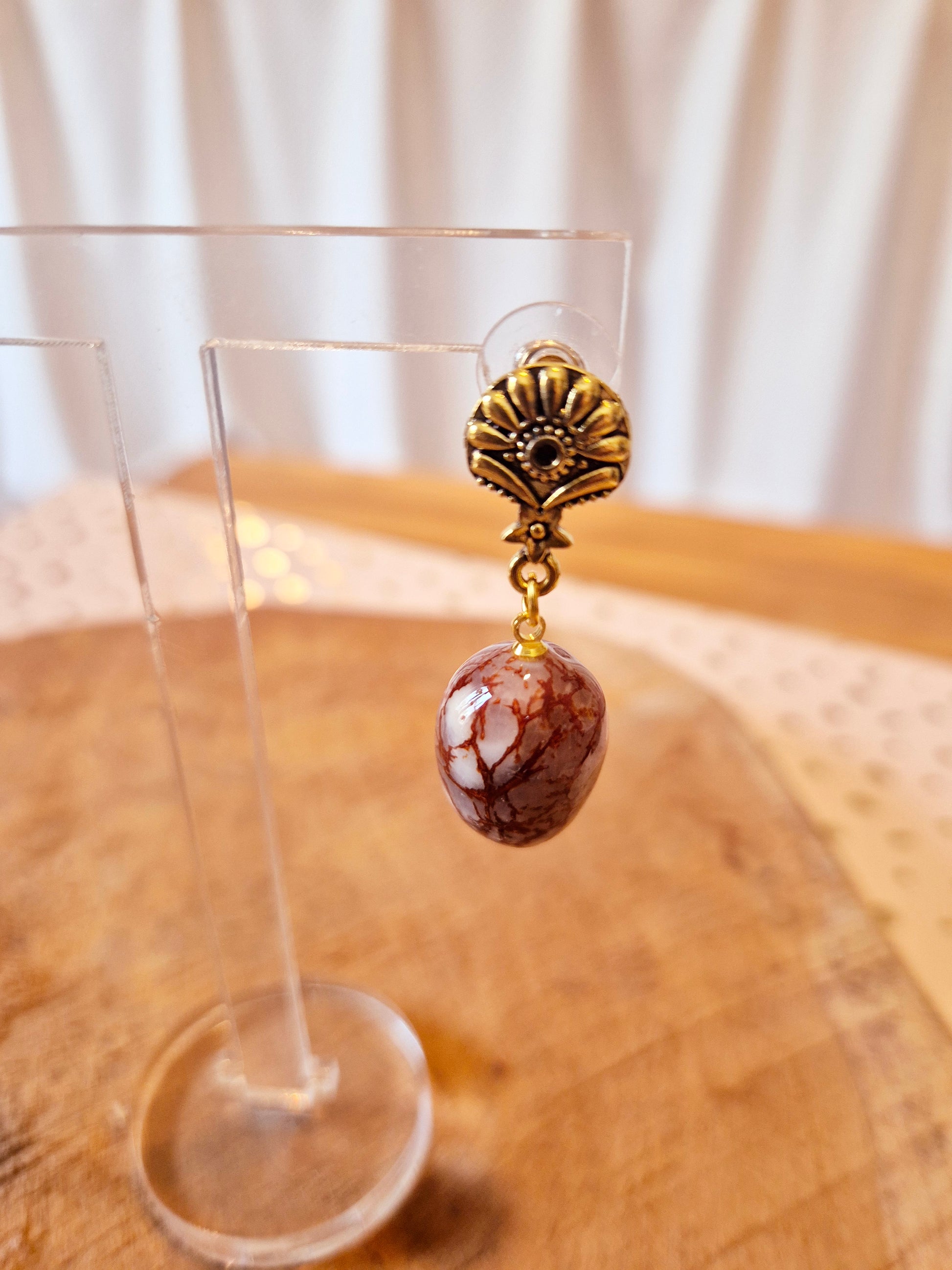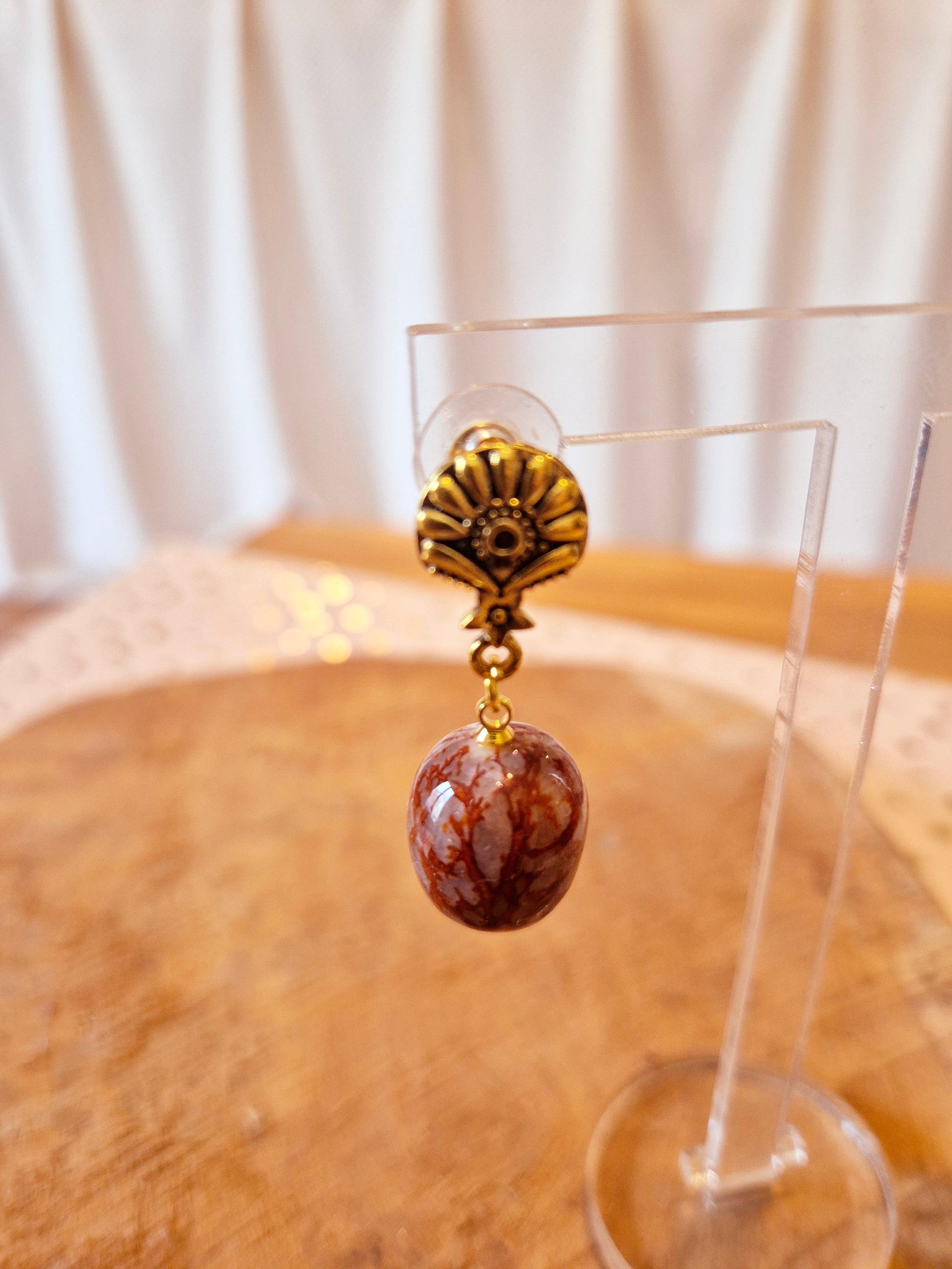 De toute beauté, ces boucles d'oreilles ont une hauteur de 38mm et sont composées de graines de palmiers( dite ivoire végétal) mesurant 14mm × 18mm.