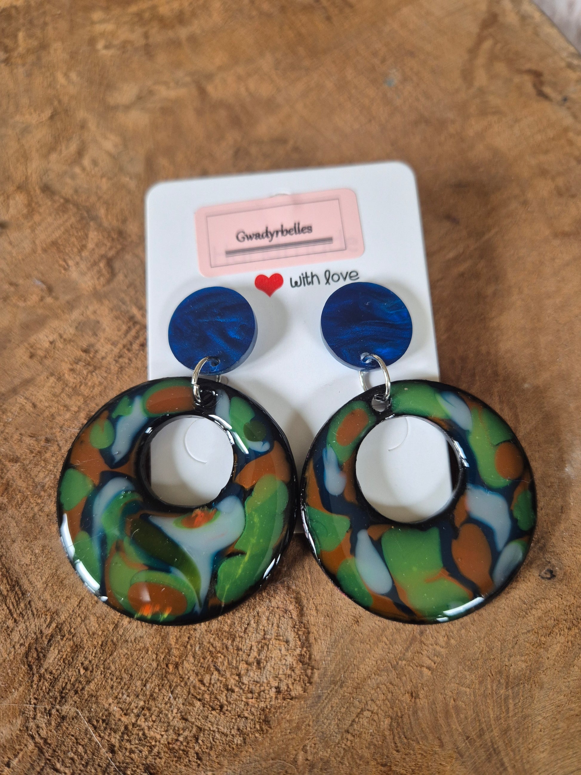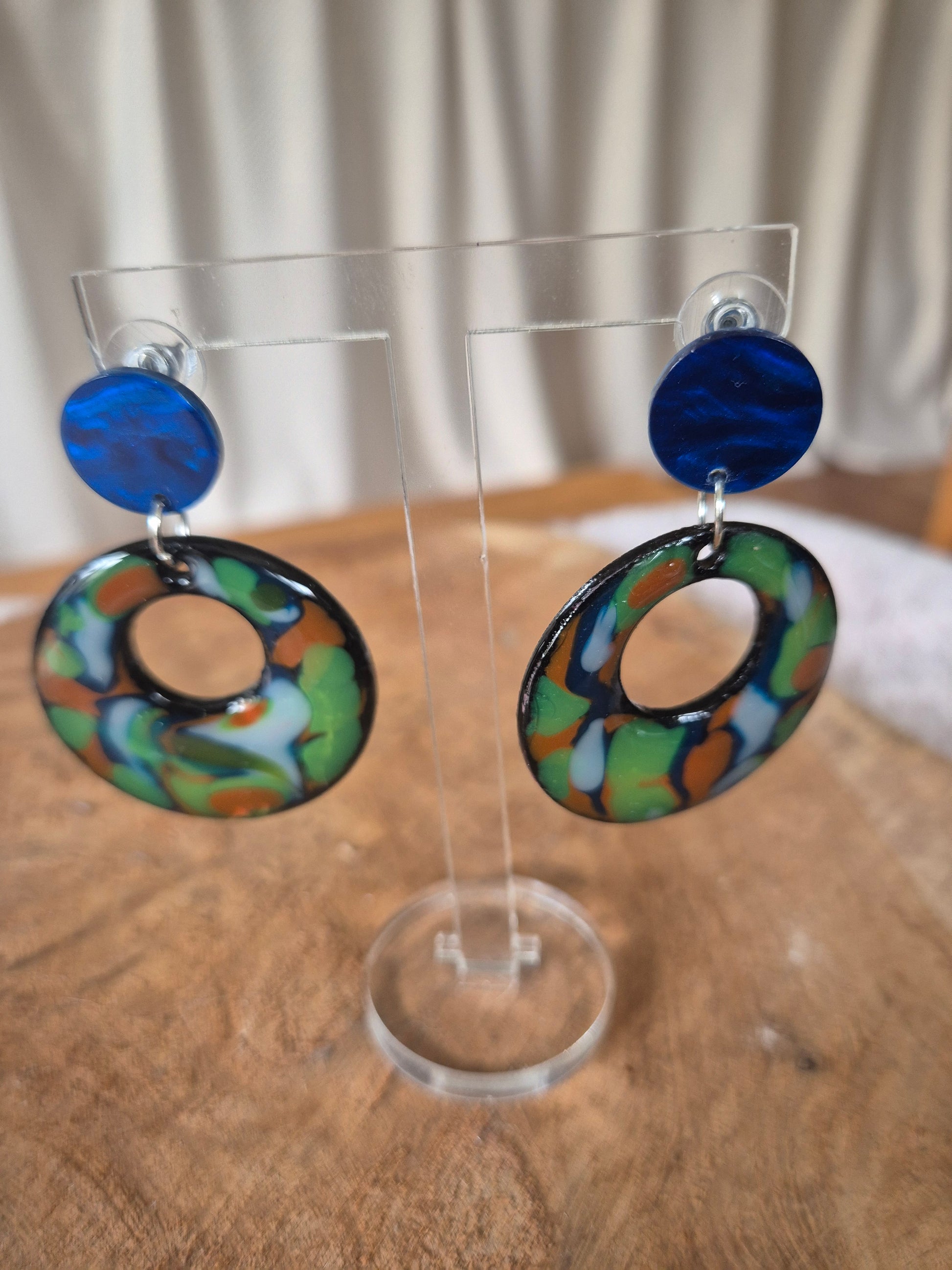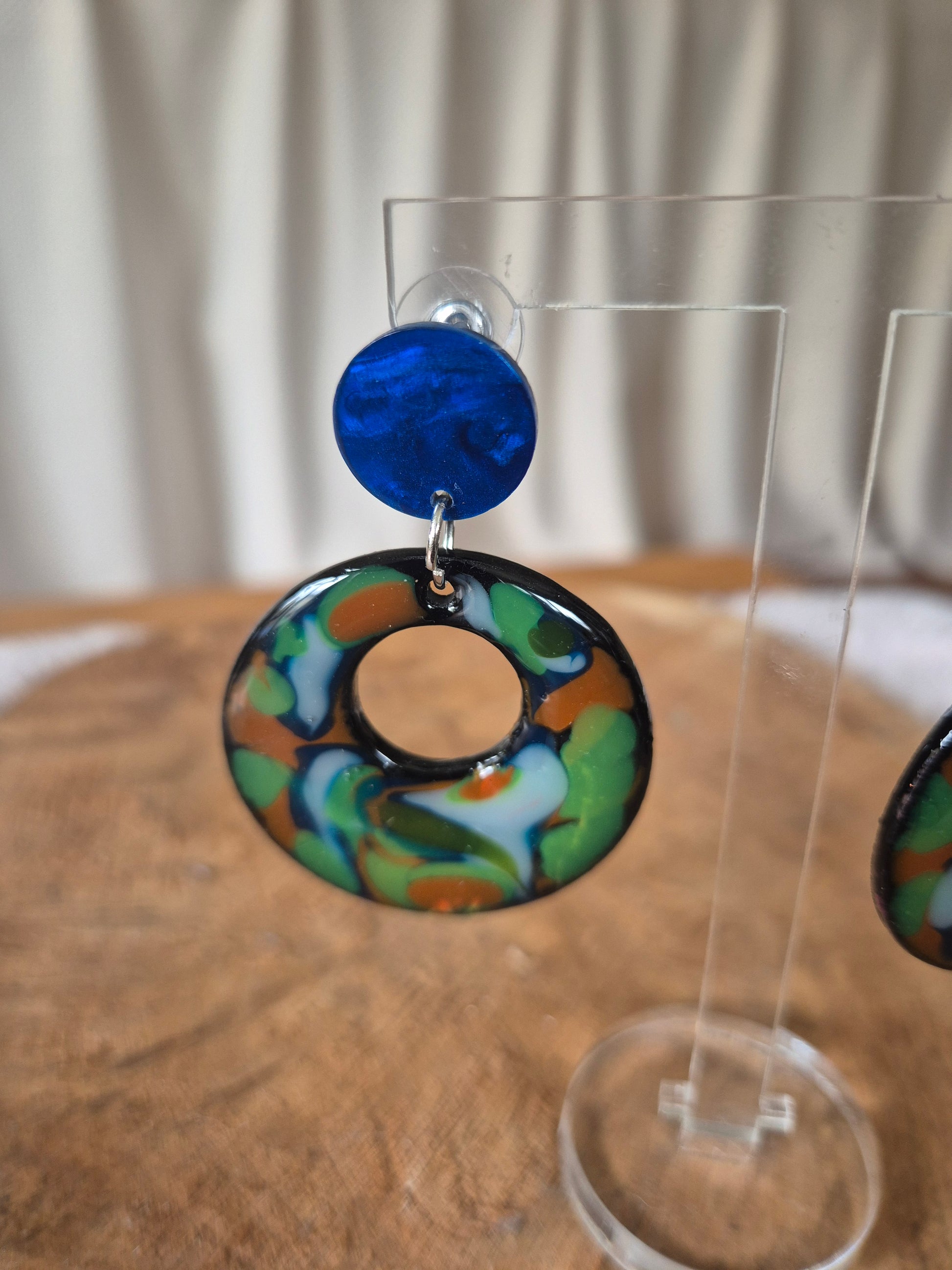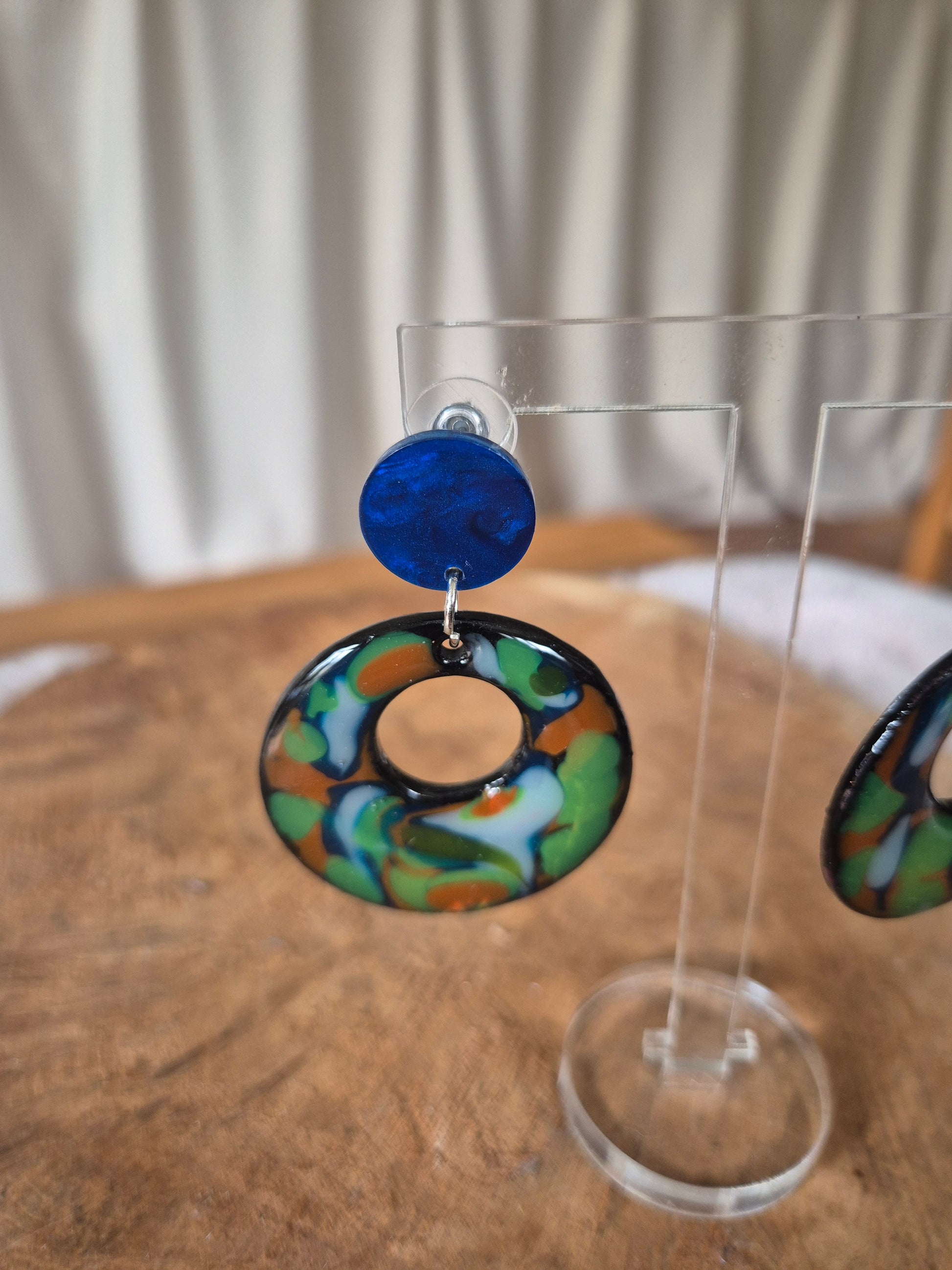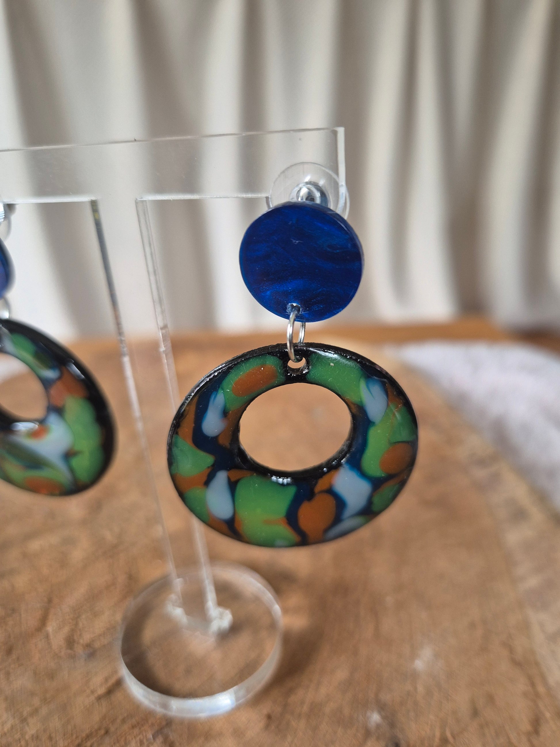 Superbes boucles d'oreilles en pâte polymère, comprenant une créole de 39 mm. Le bijou mesure 59mm de hauteur.