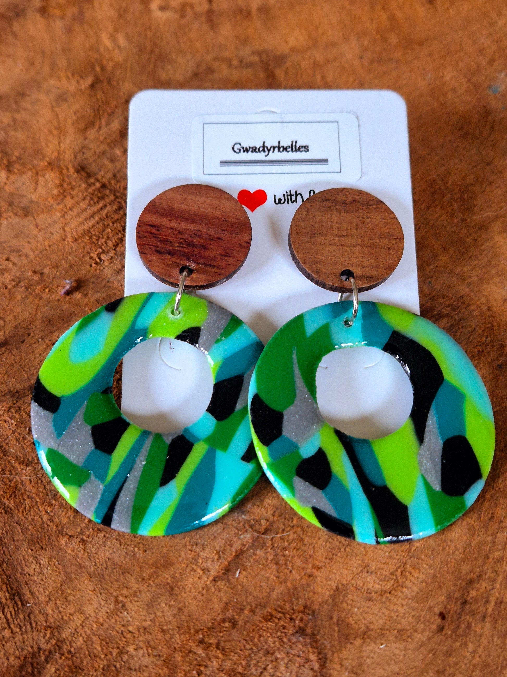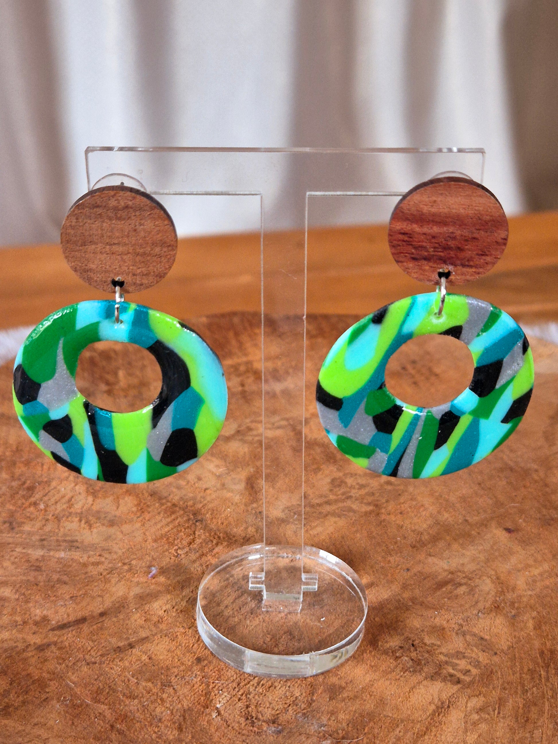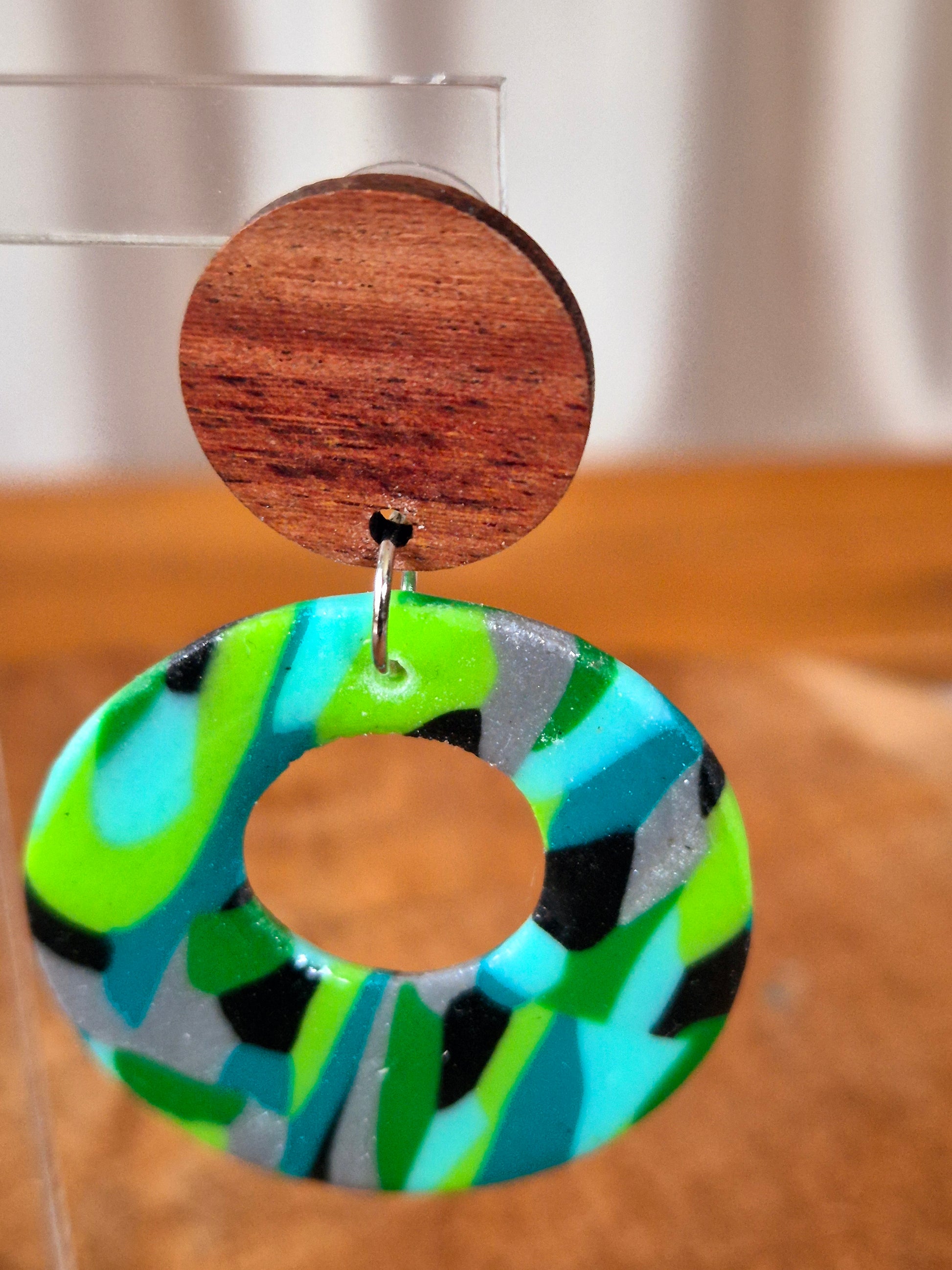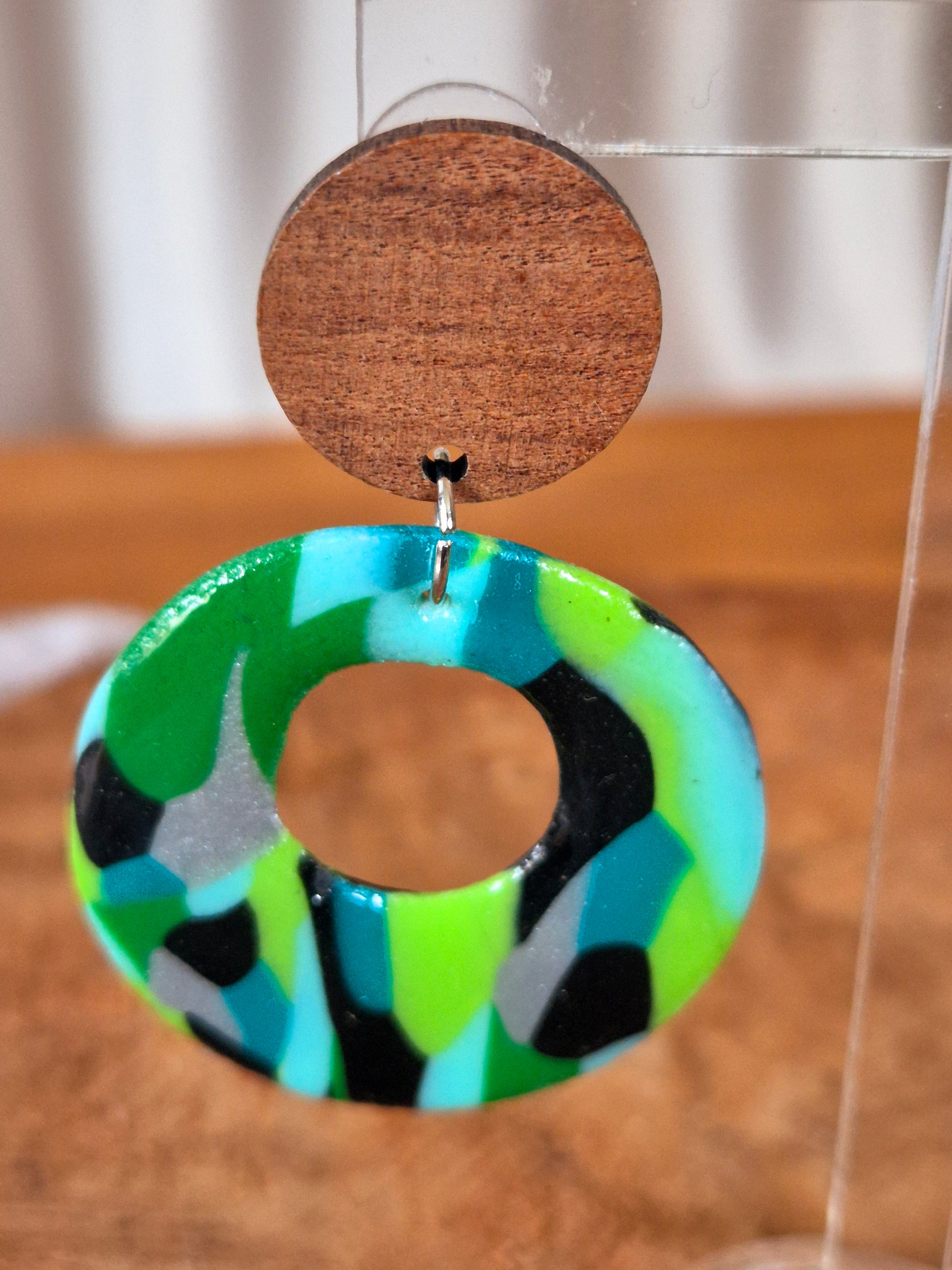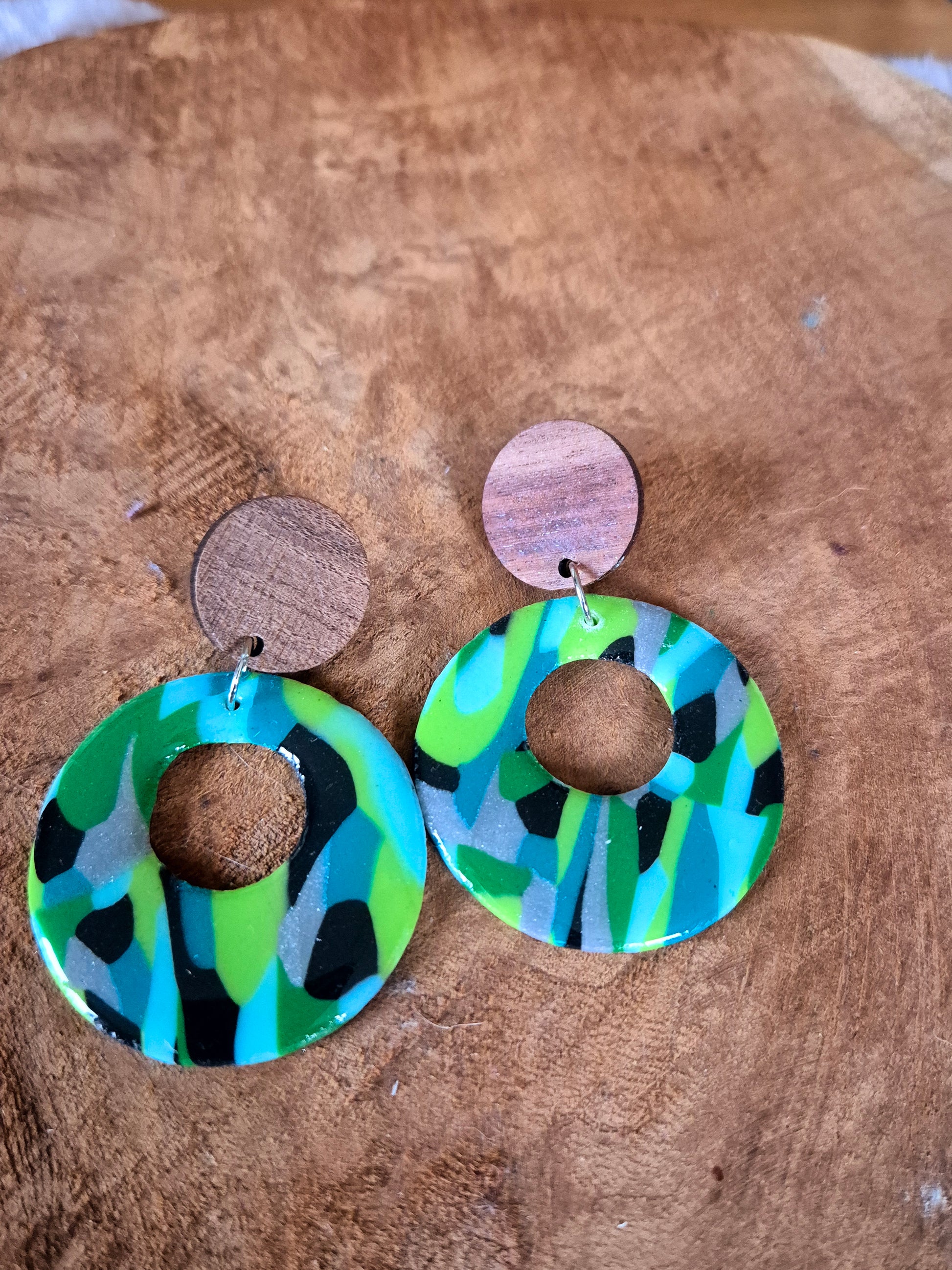 Magnifique boucles d'oreilles en pâte polymère, comprenant une créole de 39 mm. Le bijou mesure 59mm en hauteur.