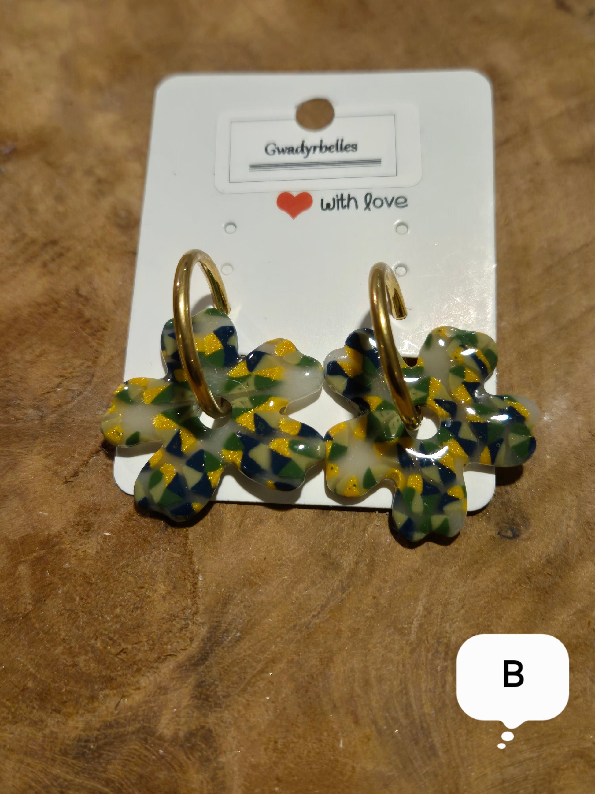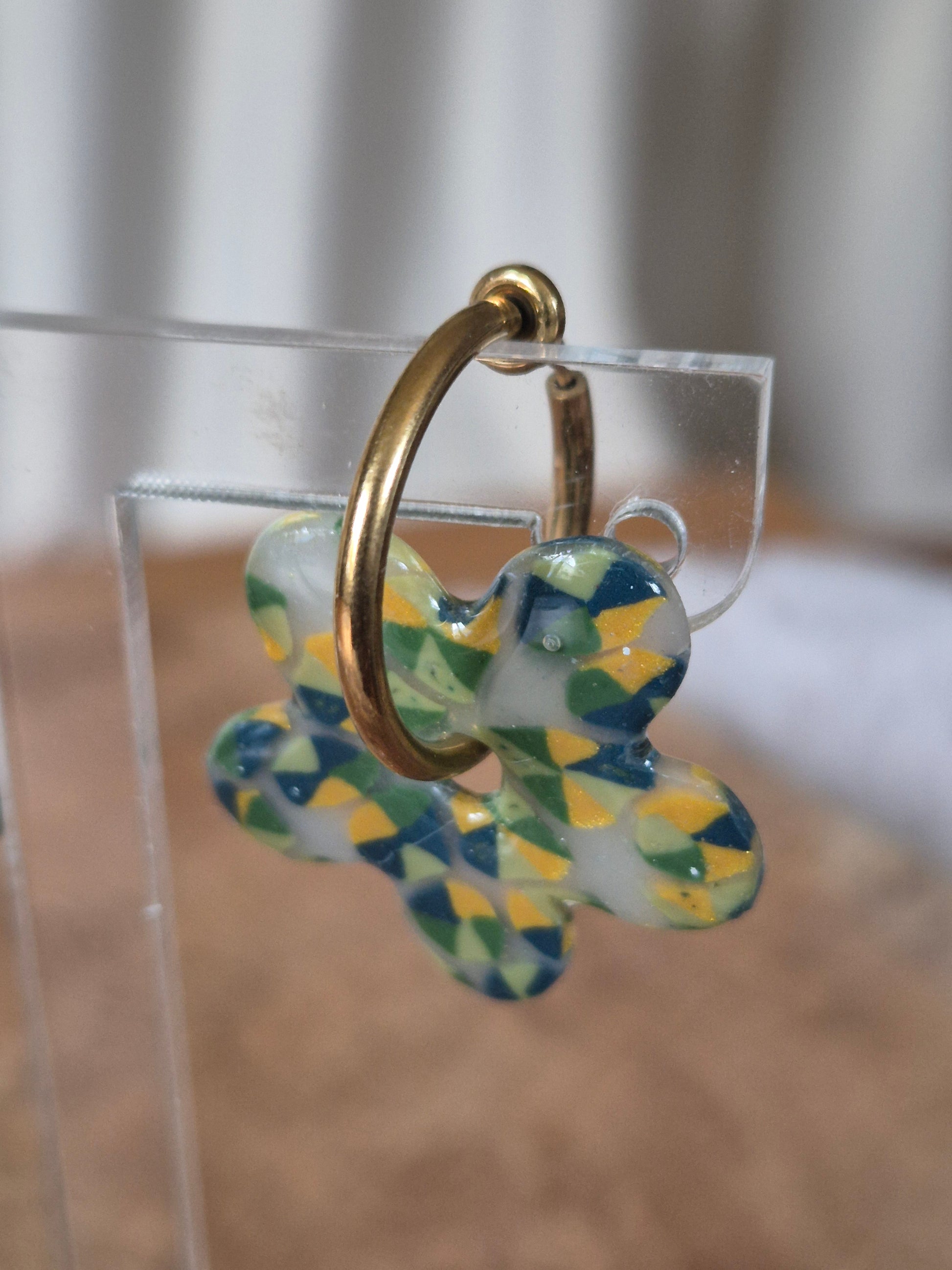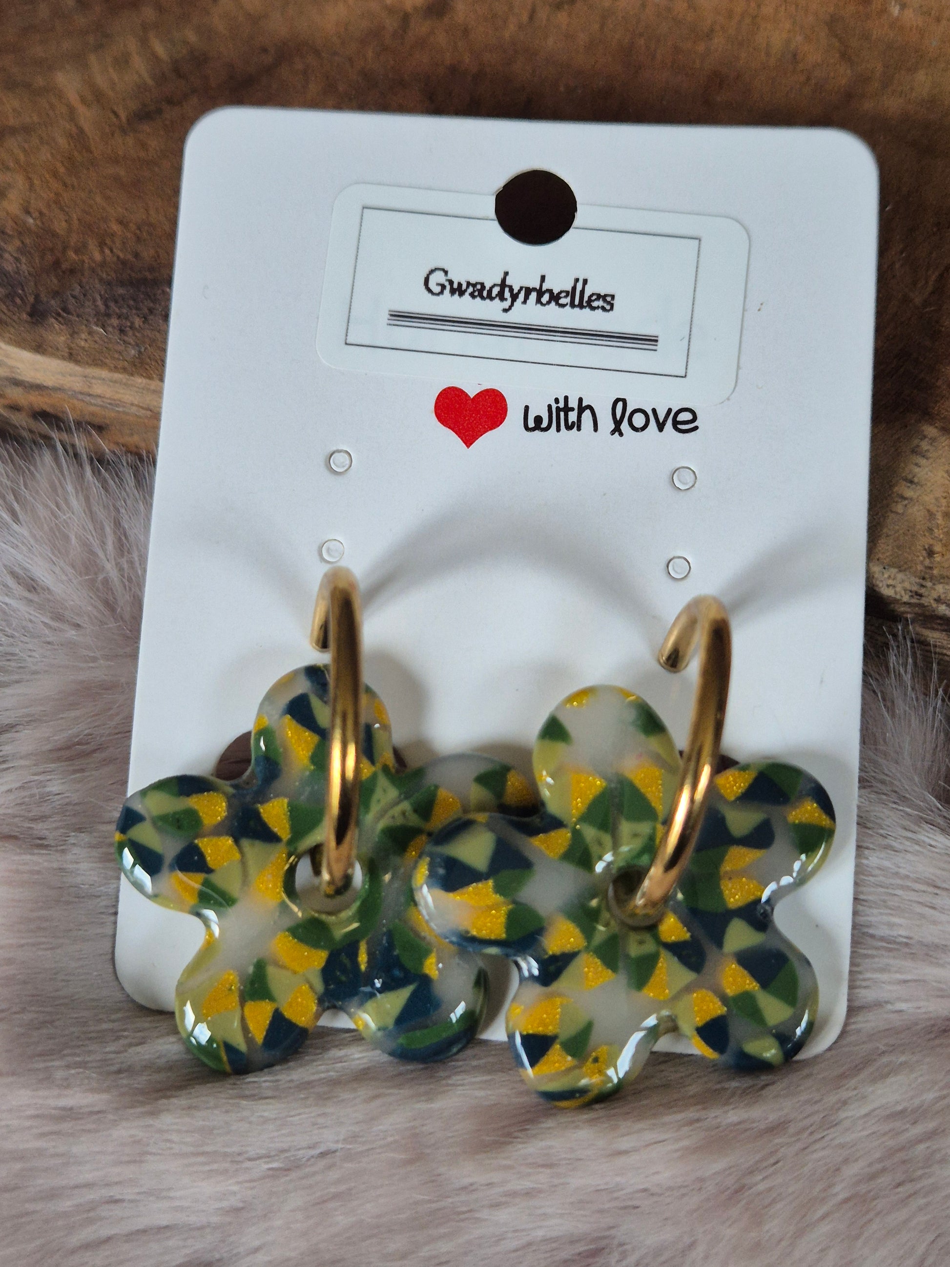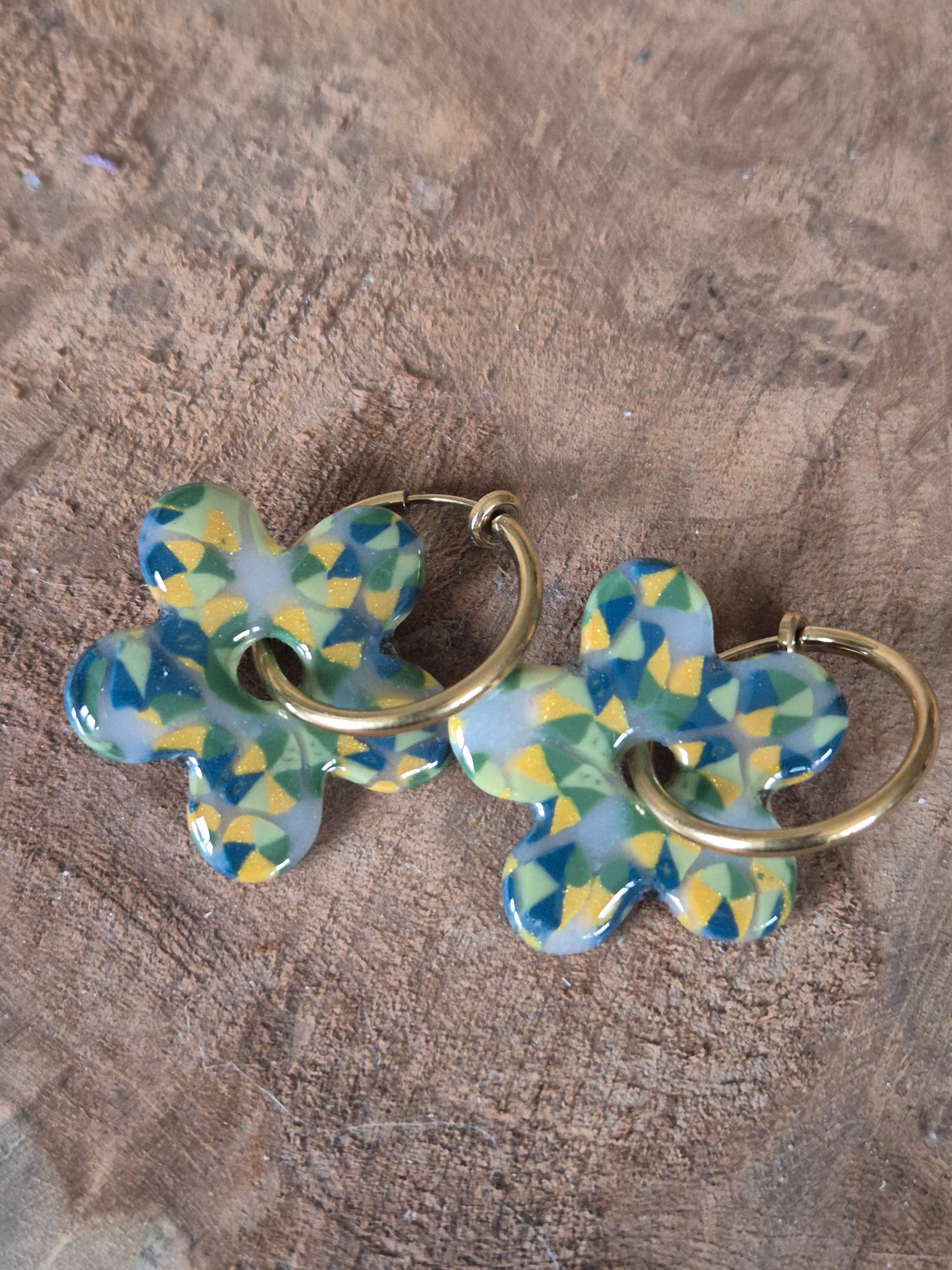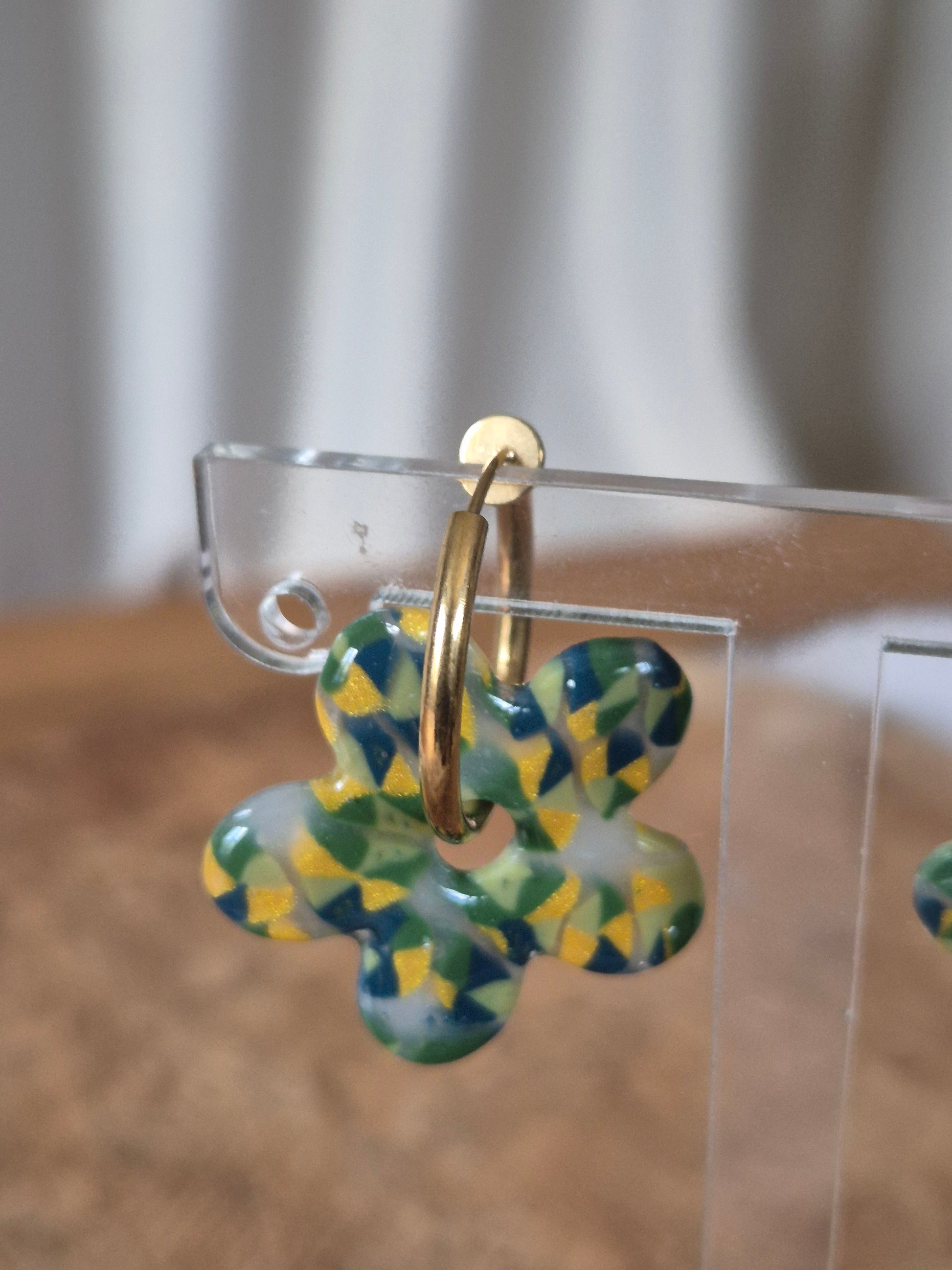 Délicates pampilles florales de 28mm sur créoles dorées de 22mm."