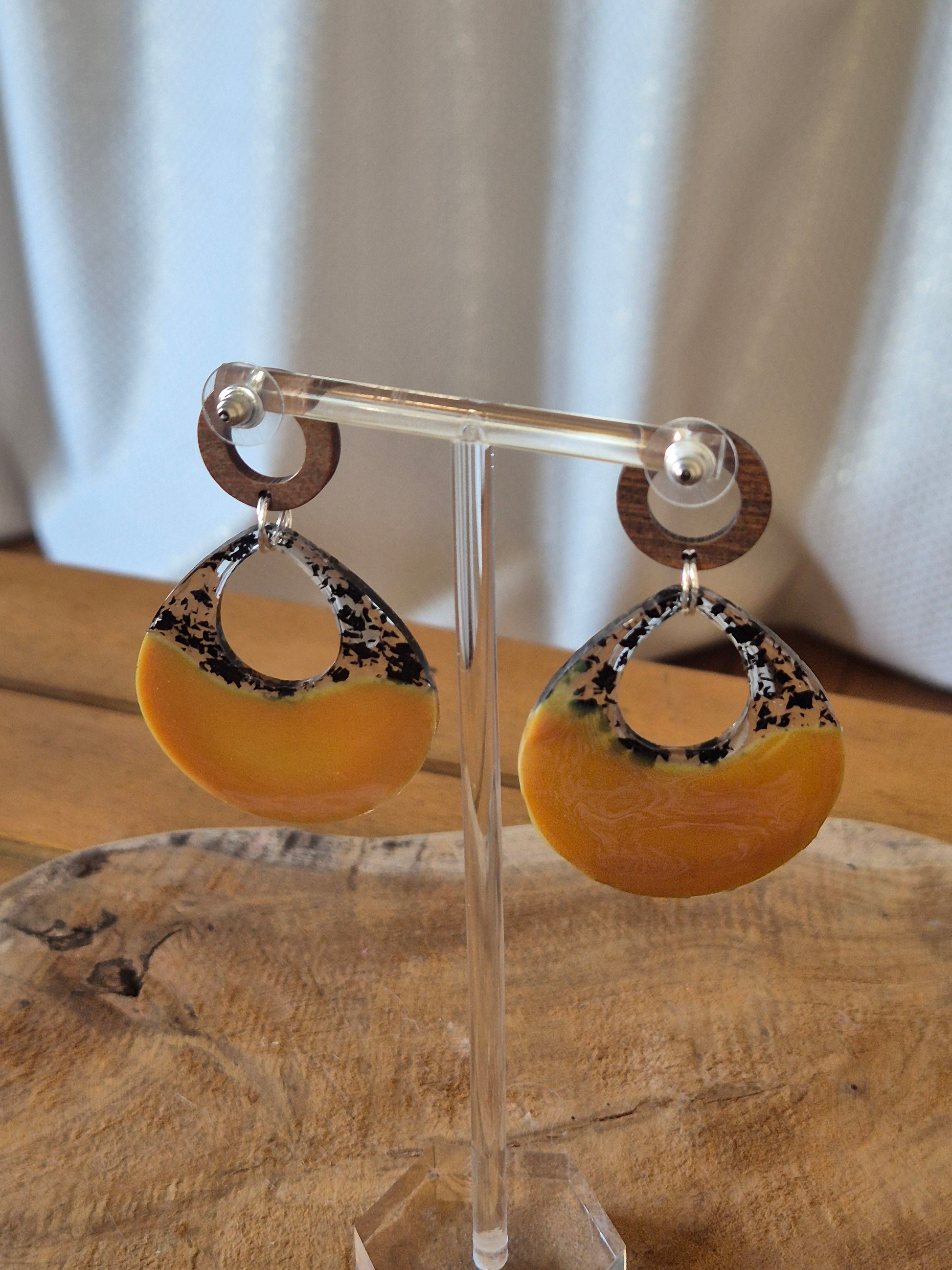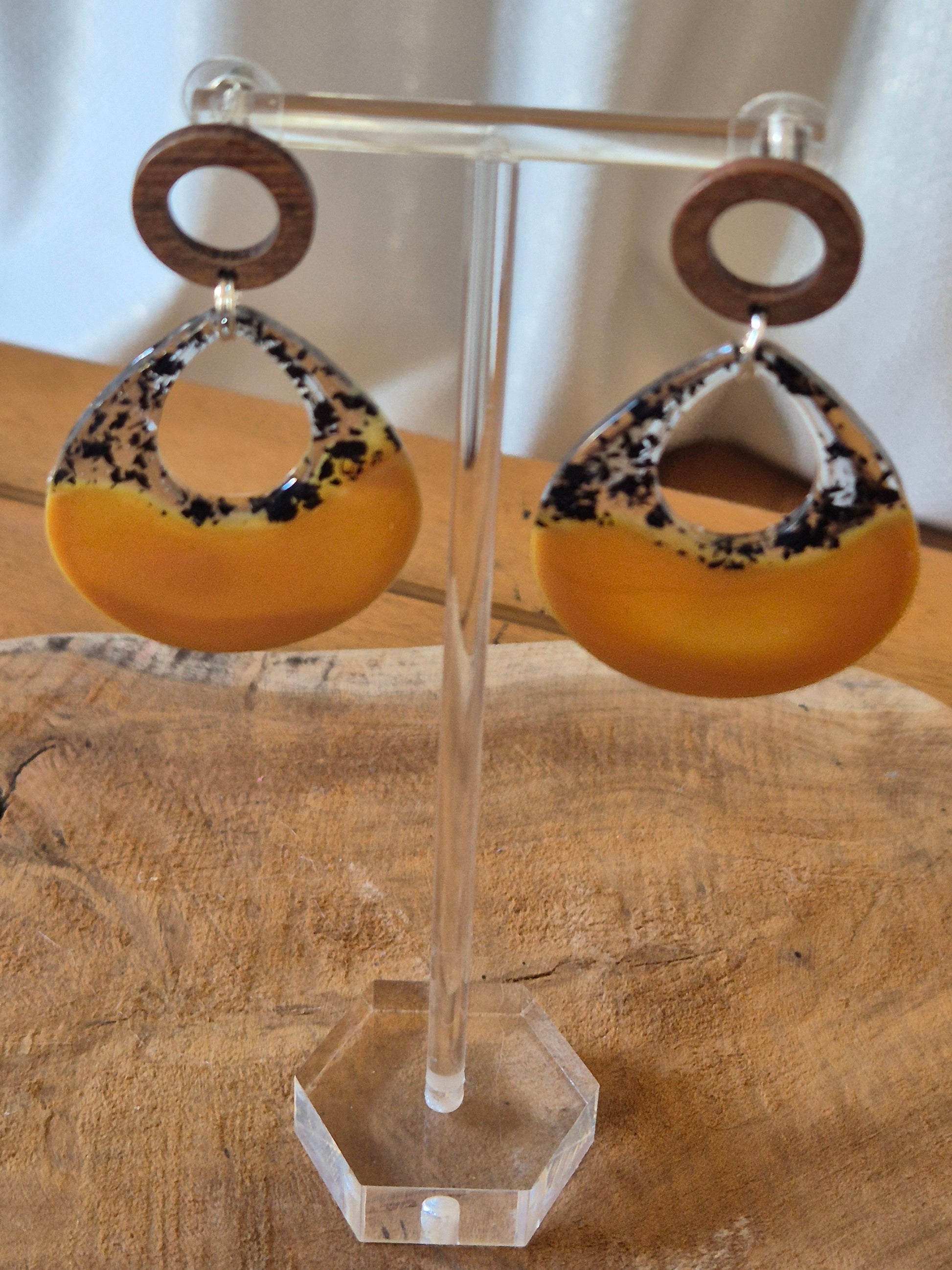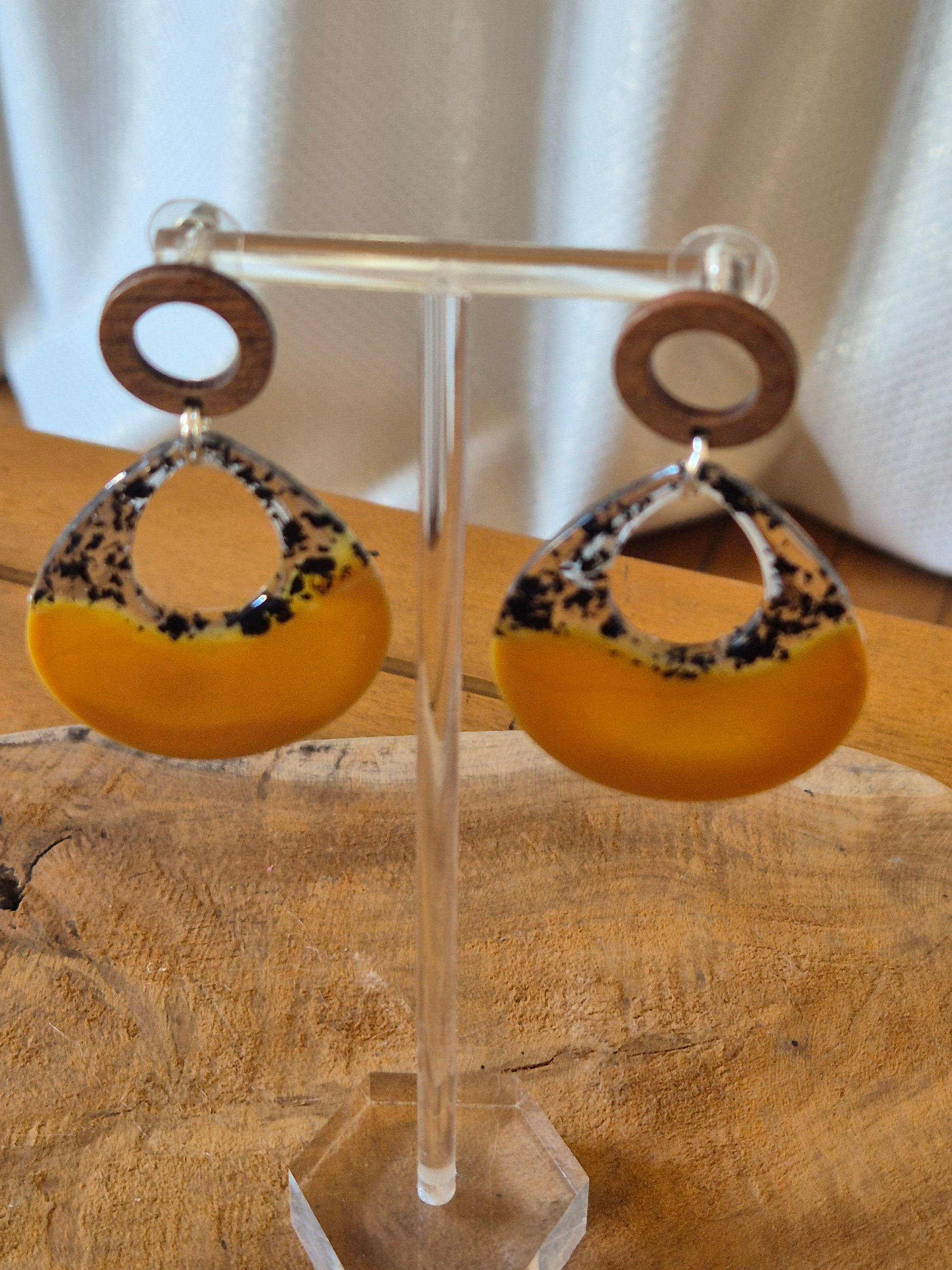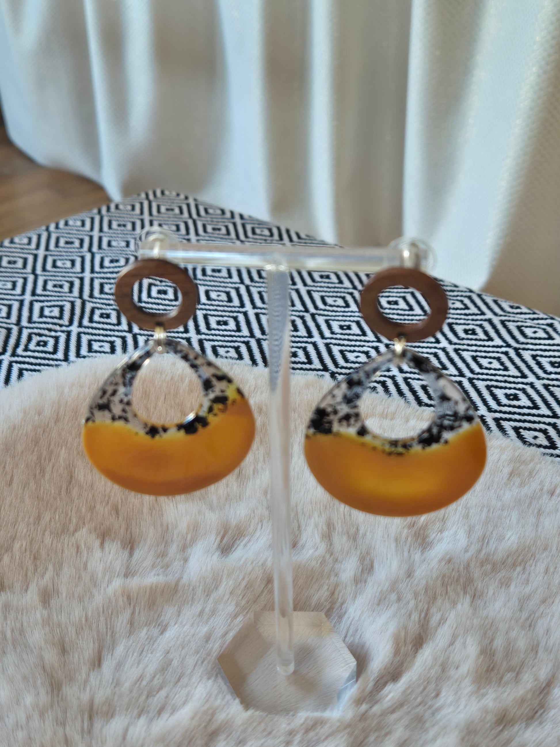 Ajoutez une touche d'élégance et d'originalité à votre look avec ces magnifiques boucles d'oreilles en couleur moutarde. Légères et ajourées en forme de goutte, elles mesurent 59 mm de hauteur et 36 mm de base. Parfaites pour toutes les occasions, elles rehausseront instantanément votre style.