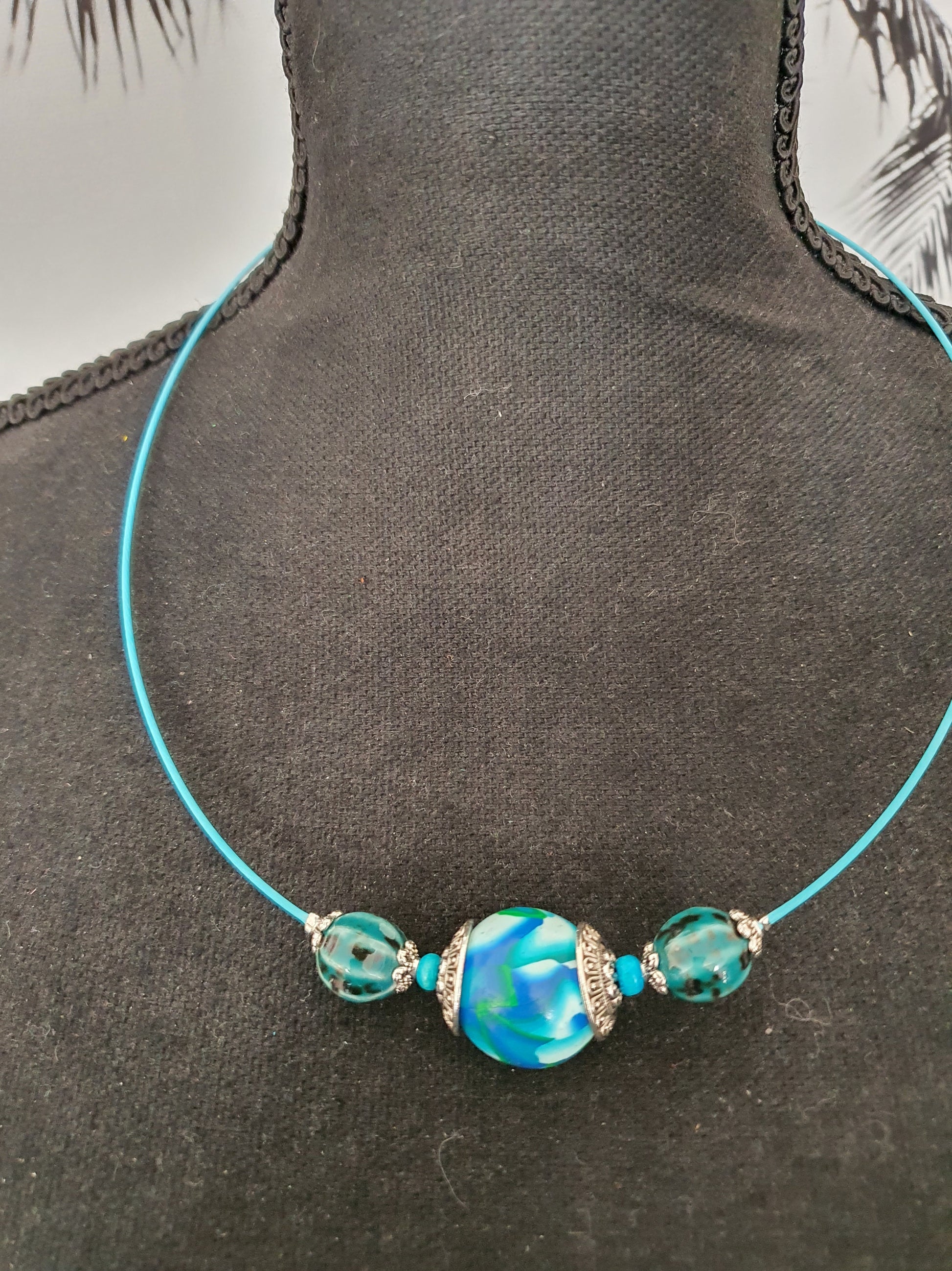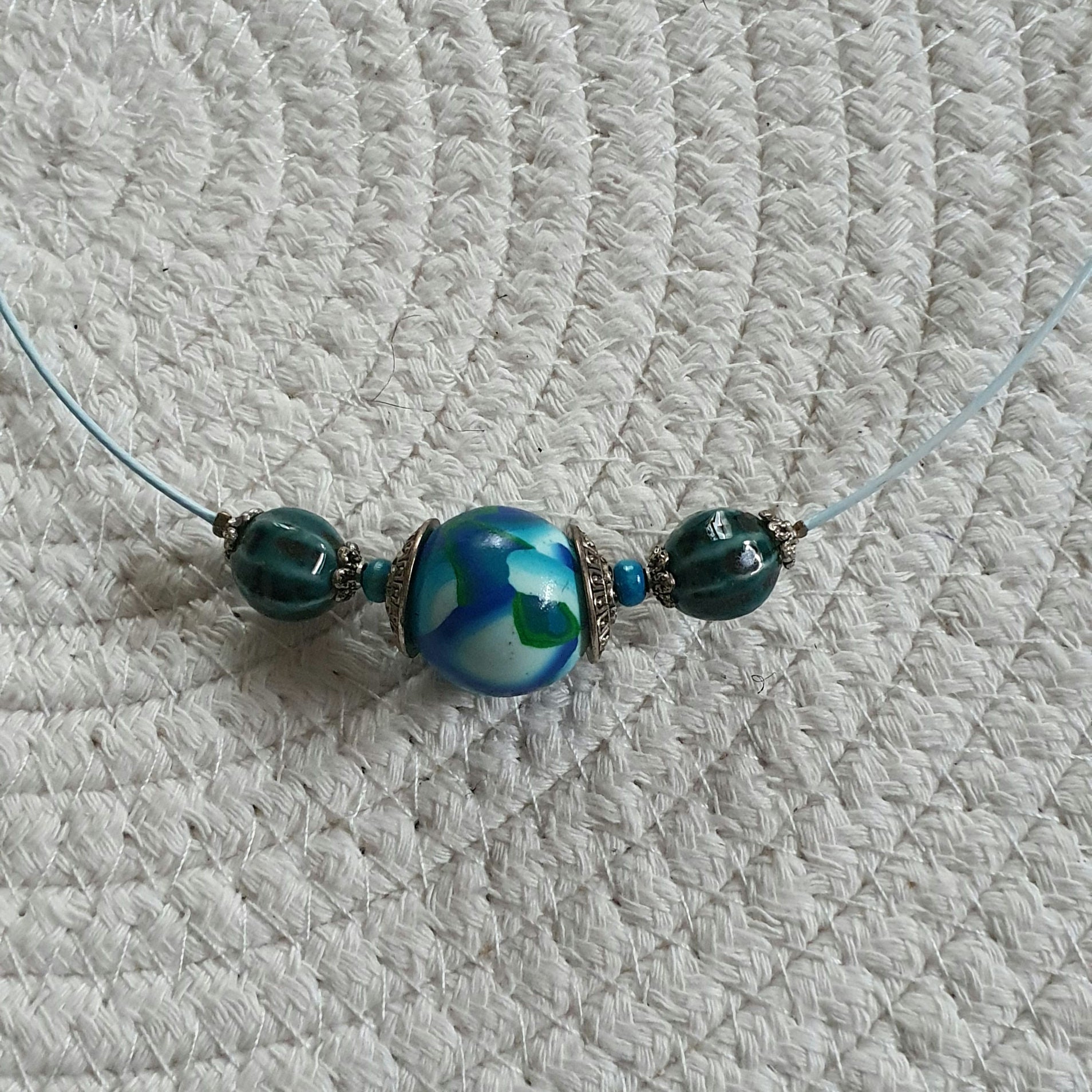 Perle polymère montée sur câble avec 2 Perles en céramique+ fermoir couleur argent.