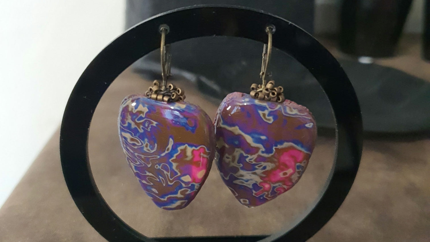 Découvrez notre superbe parure originale "La tortue" qui apportera une touche unique à votre look ! Le collier en polymère de 61mm est monté sur un cordon en cuir avec un fermoir couleur bronze pour un style tendance. Les boucles d'oreilles en pâte polymère de 35mm de long, agrémentées de perles Miyuki et de supports en métal couleur bronze, complètent parfaitement l'ensemble. Soyez élégante et originale avec la parure "La tortue" !